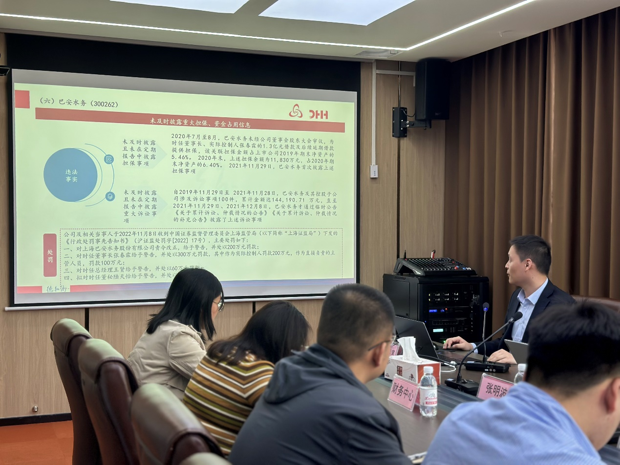 張明波律師結合上市公司違規案例,對(duì)相關法律法規進(jìn)行解讀,深入淺出的講解,讓與會人員深刻的理解每條規則背後(hòu)所代表的風險管控目的,知悉重大事(shì)項未及時彙報對(duì)公司經(jīng)營可能(néng)造成(chéng)的嚴重後(hòu)果。