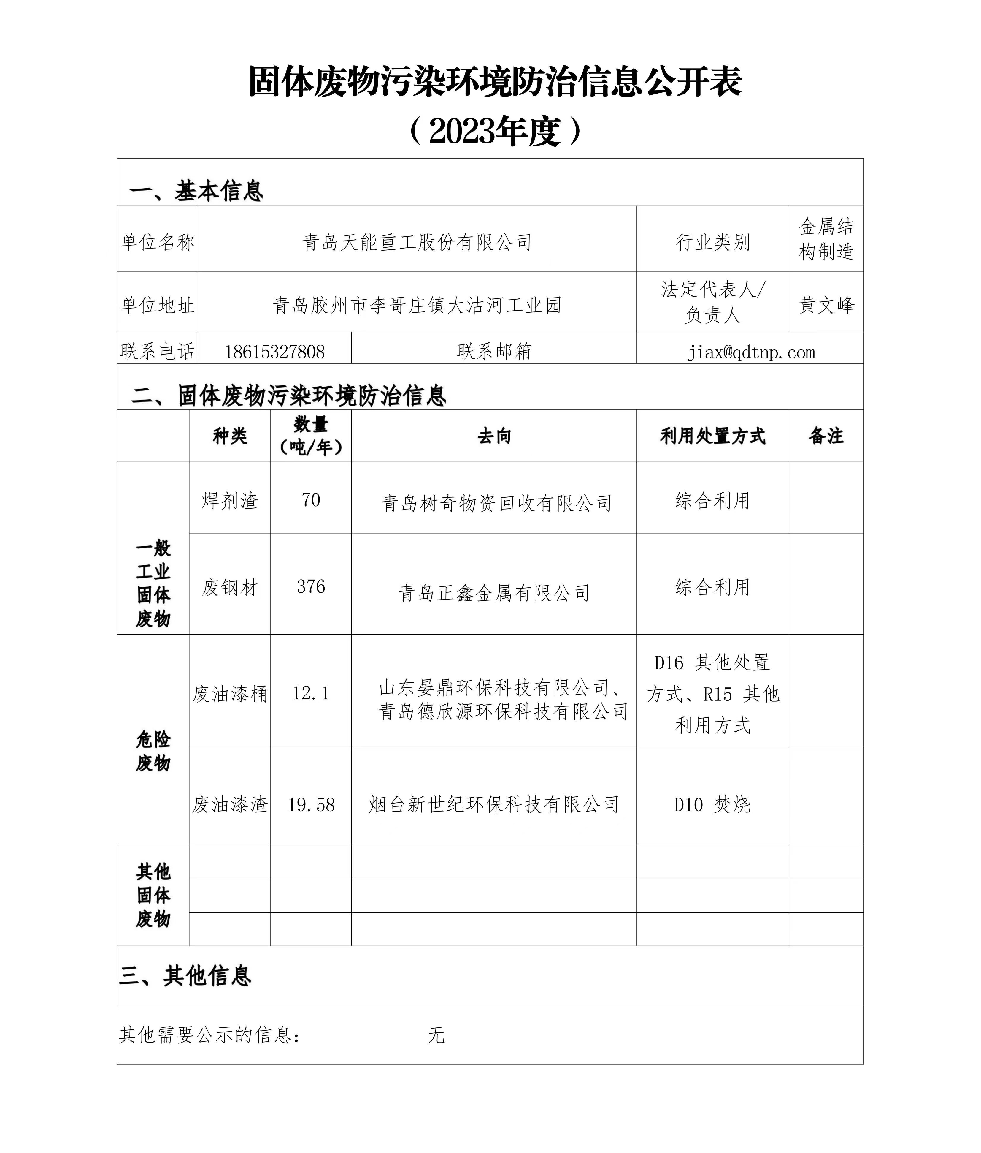 固體廢物污染環境防治信息公開(kāi)表 (2023年度)